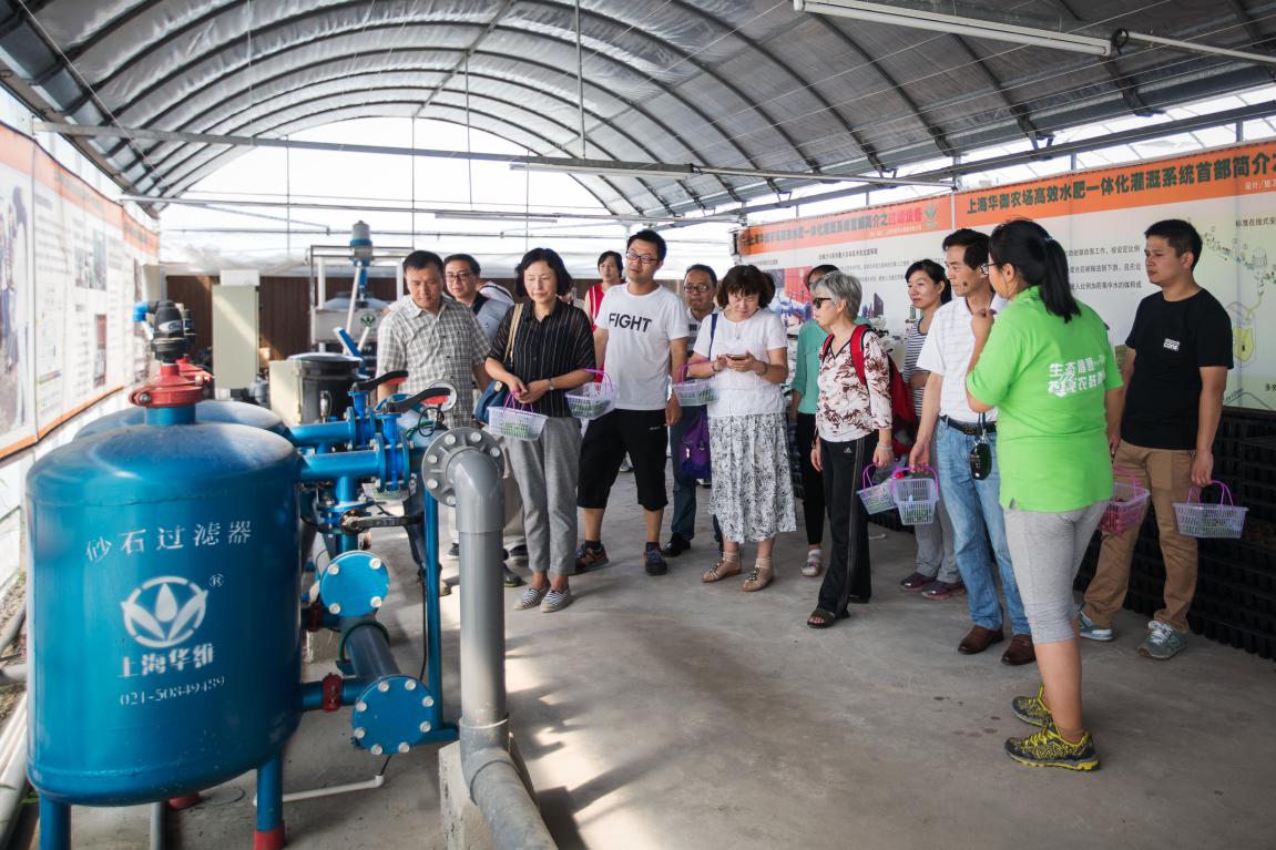图7 教师参观上海华御农场水肥一体化灌溉系统