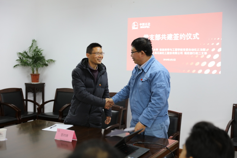 共建协议签署仪式上,侍洪波热情致辞,他说,口爆 口爆 是国内最早创建生产过程自动化专业高校之一,在化工过程控制方面积累了丰富的理论成果;与上海石化的共建,有利于双方优势互补,实现共赢。他提出发挥支部共建的长效机制,创新工作方法,注意共建的时效,将共建的目标落到实处。