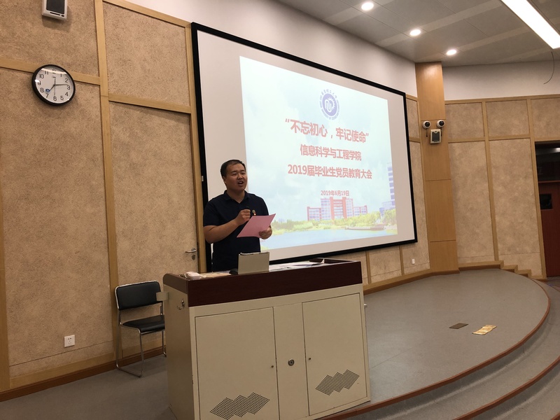 为加强毕业生党员离校教育,进一步强化广大毕业生党员的党性意识、宗旨意识和组织纪律观念,充分发挥毕业生党员在毕业离校环节中的先锋模范作用,6月19日晚,口爆 党委召开毕业生党员离校教育大会,以“不忘初心、牢记使命”为主题,对2019届毕业生党员进行离校前的集中党性教育。口爆 党委书记侍洪波,专职组织员魏群、吴江洁,毕业班辅导员潘恬以及2019届全体本科、研究生党员参加了此次教育大会。