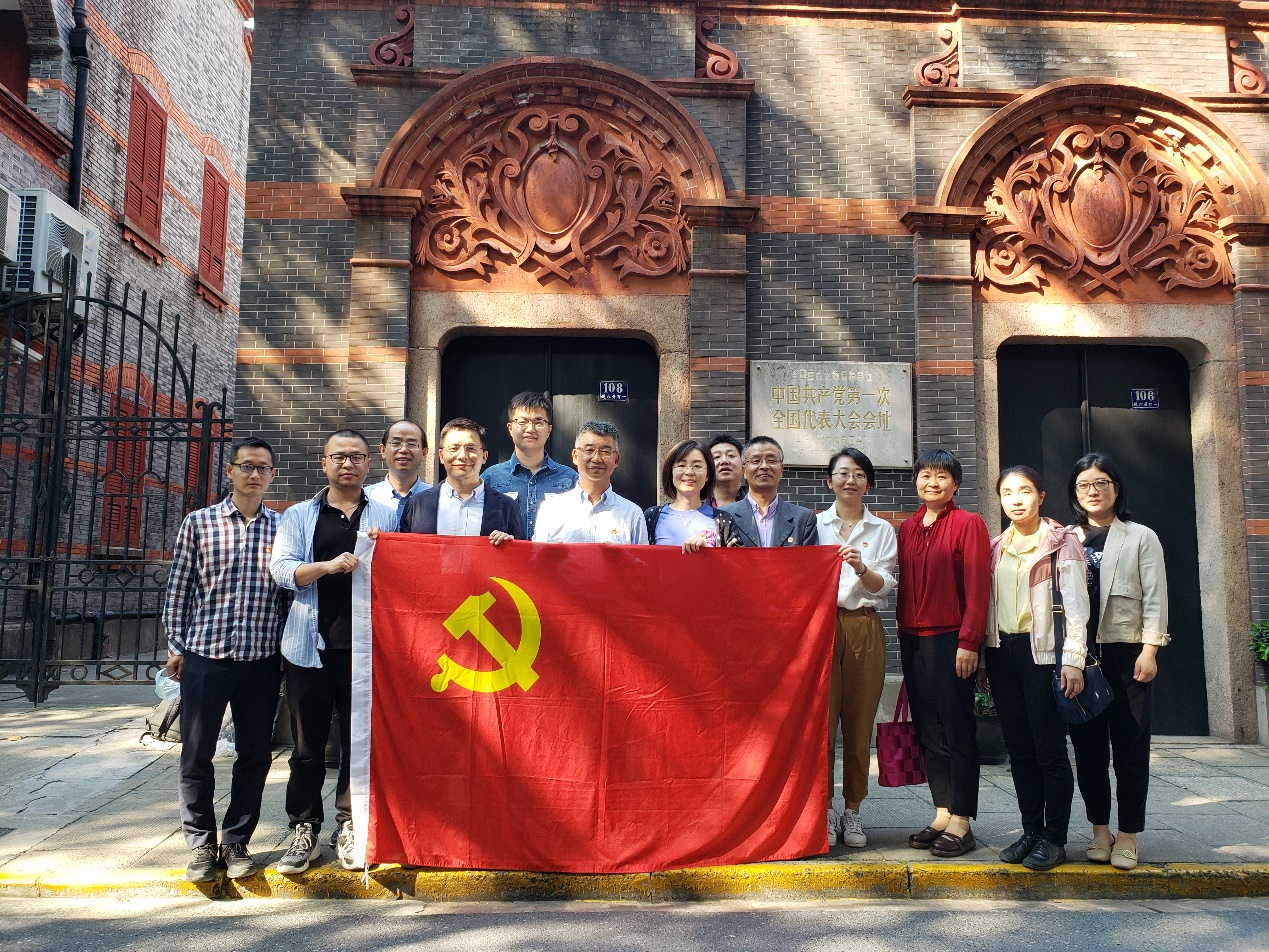 位于上海市兴业路76号的中国共产党第一次全国代表大会会址,是中国共产党的诞生地。1921年7月23日至8月初,中国共产党第一次全国代表大会在上海举行,国内各地的共产主义小组代表参加了此次会议。在这里,中国共产党第一次全国代表大会通过了第一个党纲和决议,选举了党的领导机构,宣告了中国共产党的诞生。步入一大会址,在志愿者的引领下,大家瞻仰了中共一大代表群像浮雕。面对鲜红的党旗,党员们一起重温入党誓词,以坚定的宣誓,表达不忘初心、牢记使命的信念和决心。随后大家一同参观了展馆内部。