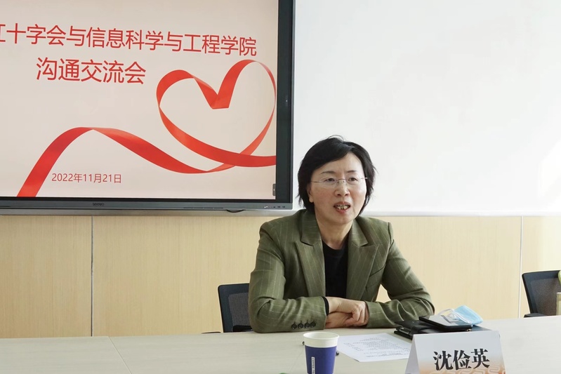 11月21日,奉贤区红十字会与口爆 在徐汇校区开展沟通交流会。奉贤区红十字会党组书记、常务副会长沈俭英,党组成员、副会长王燕,办公室主任范丹红,志愿服务条线负责人屠慧清;学院党委书记侍洪波,党委副书记杨文,团委书记张佳怡,19级本科生辅导员高子钧参加会议。