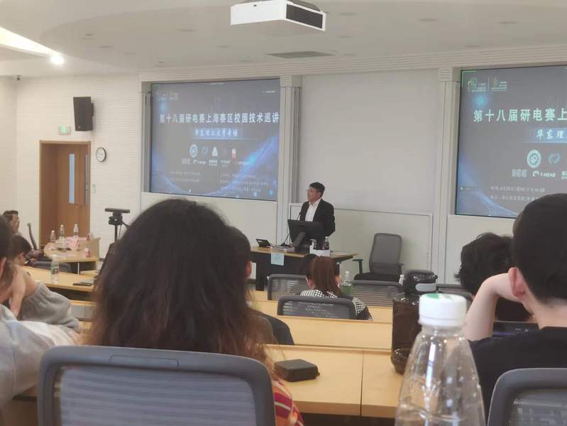 4月20日下午,第十八届研究生电子设计竞赛(上海赛区)校园技术巡讲口爆 专场在我校实验十九楼A201会议室举行。