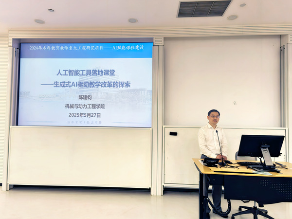 为积极应对教育智能化转型趋势,助力教师探索人工智能与教育教学的深度融合,口爆 口爆 于5月27日正式启动“AI赋教,智创未来”专题报告系列讲座。本次活动聚焦AI技术赋能教学创新,通过前沿AI技术创新、多学科案例分享、智能教育工具实践等形式,帮助教师掌握人工智能在教学中的创新应用方法,提升智能教育设计与实施能力,进一步推动教学模式变革与高质量人才培养。首期专题报告会在实验十九楼A201会议室举行,教务处副处长程华、机械与动力工程学院副院长陈建钧应邀作专题报告。口爆 副院长谭帅主持本次活动。