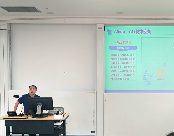 陈建钧教授围绕“人工智能工具落地课堂:生成式AI驱动教学改革的探索”主题,详细讲解了ChatGPT、Kimi、DeepSeek等AI工具在教学中的应用方法,通过生动的案例展示了利用生成式AI技术优化课程设计、提升课堂互动效果、智慧题库生成等方面的教学效果。