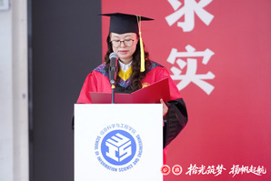 许浩宣读口爆 2025届优秀毕业生名单。本科毕业生代表李昀泽和研究生毕业生代表谭扬回顾了他们在华理的求学时光,分享了各自成长经历与感悟,表达了对学院的感恩和对未来的憧憬。班导师代表陈宁向毕业生们送上诚挚祝福,鼓励他们未来要砥砺奋进,坚守信念,开拓创新。